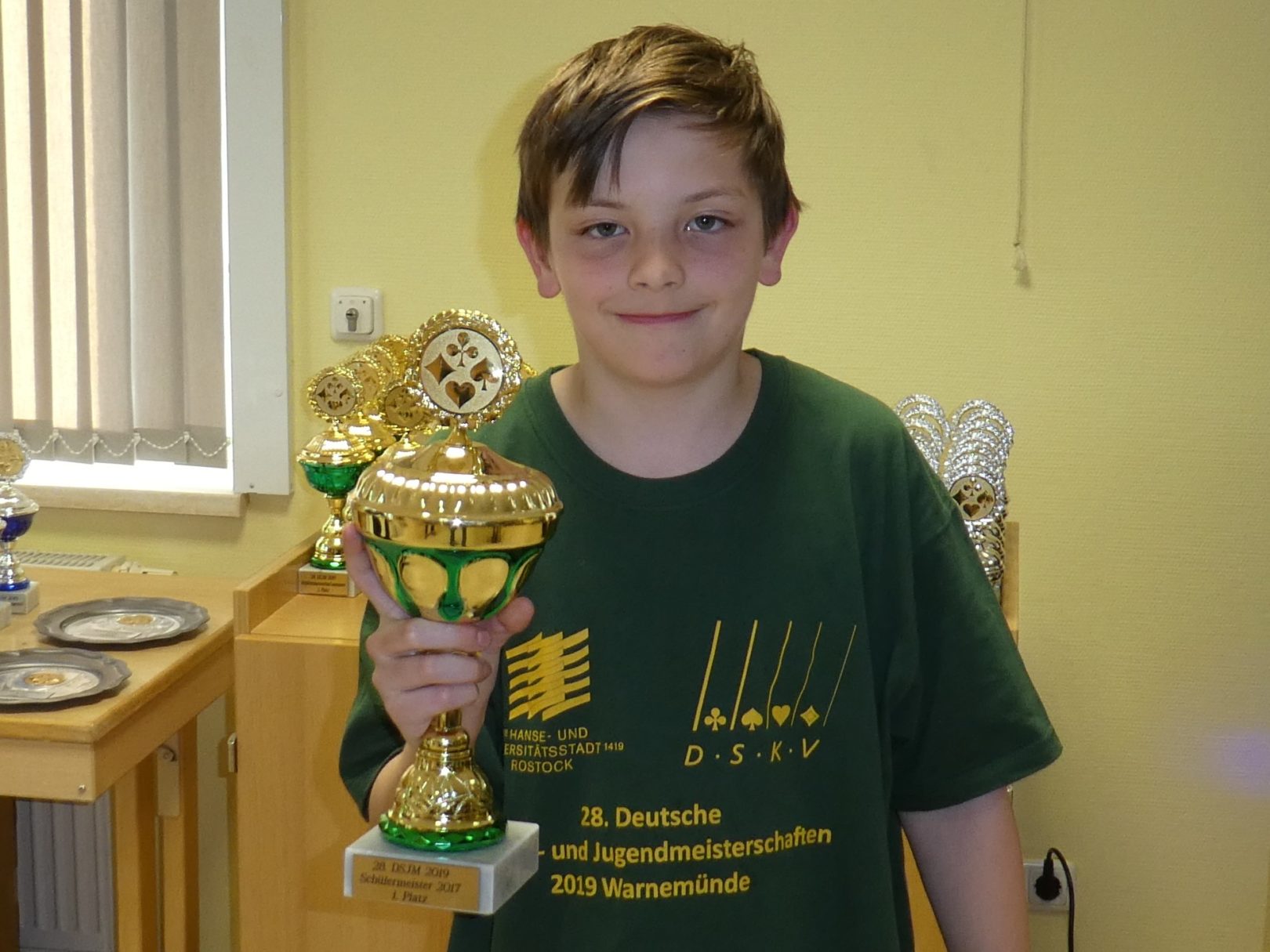 Zuerst erhielten die Bambini Ihre Pokale, darüber hinaus auch ein Skatinsel-Kartenspiel. Herzlichen Dank an die Fa. ASS in Altenburg für das Sponsoring der Spiele. Alle Teilnehmer (auch die Bambini) erhielten einen Preis, welchen sie sich von den vorbereiteten Tischen aussuchen konnten. Die Siegerehrung führten der DSkV-Jugendleiter und die Präsidiumsmitglieder Michaela Simsek und Jörg Dannemann durch. Nach 90 Minuten war die Siegerehrung vorbei und die Teilnehmer machten sich auf den (oft sehr weiten) Heimweg. Die Ergebnisse der Meisterschaften können über einen Link auf der DSkV-Homepage angesehen werden.