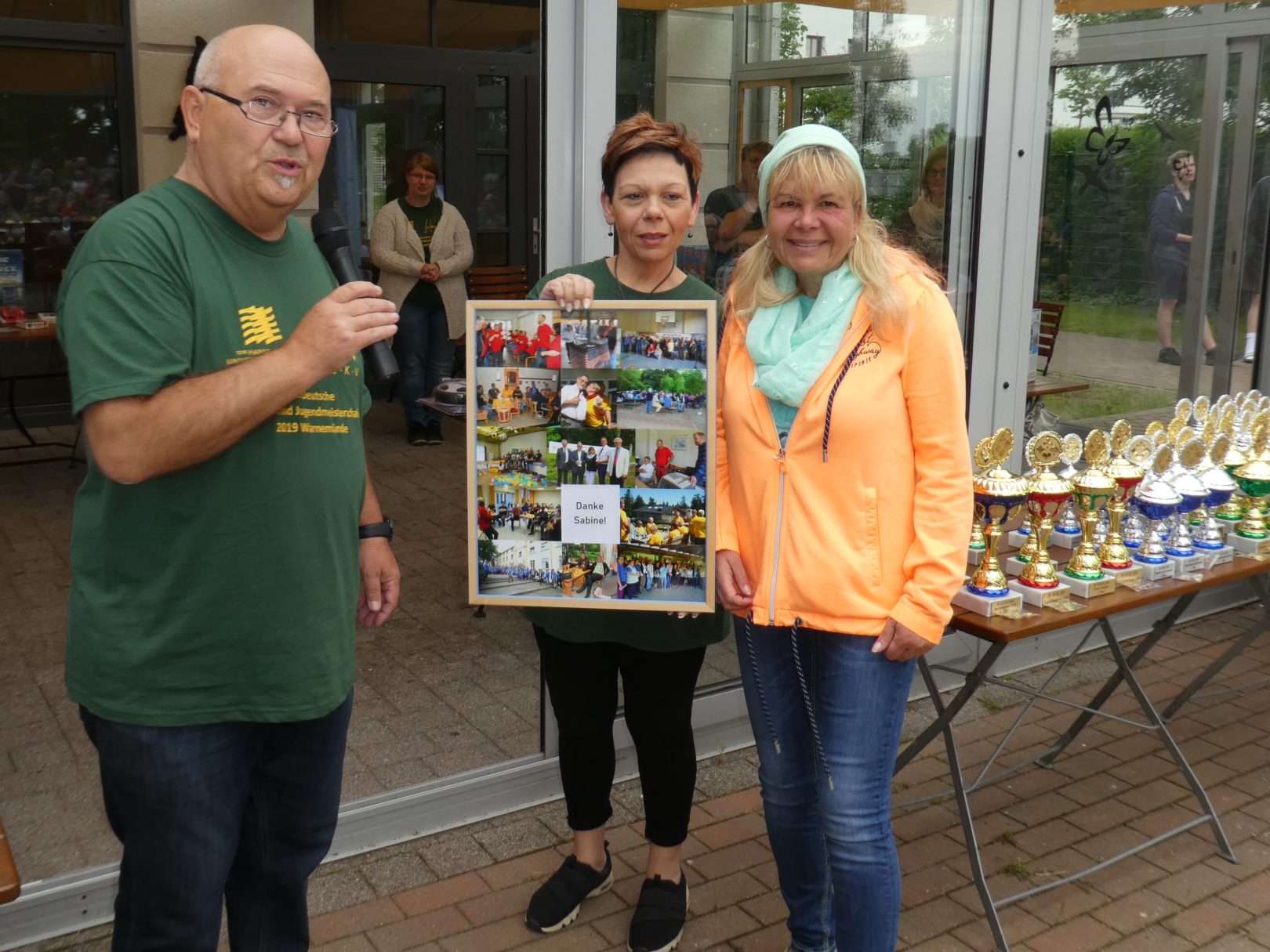 Die Siegerehrung der restlichen Teilnehmer begann am Montagmorgen pünktlich um 9h. Zuerst wurden die Geburtstagskinder der DSJM mit einem Gutschein beschenkt und Lisa Fuhrmann, welche an diesem Tag 15 Jahre alt wurde, stellvertretend für alle ein Happy Birthday gesungen. Danach wurde die Ex-Jugendleiterin des DSkV, Sabine König, mit einem Blumenpräsent und einer Collage mit Bildern aus Ihrer Amtszeit (die Bilder stellte Stefan Sosic zur Verfügung) durch die Jugendleiter verabschiedet.