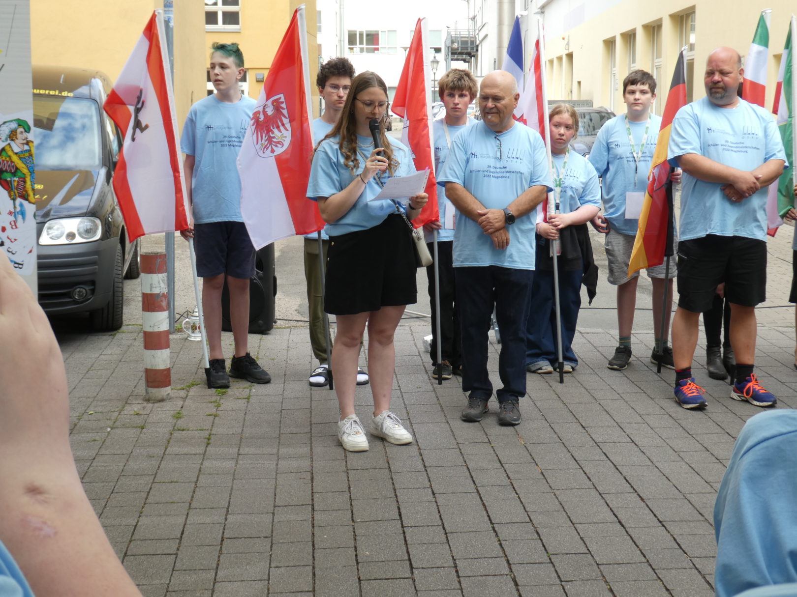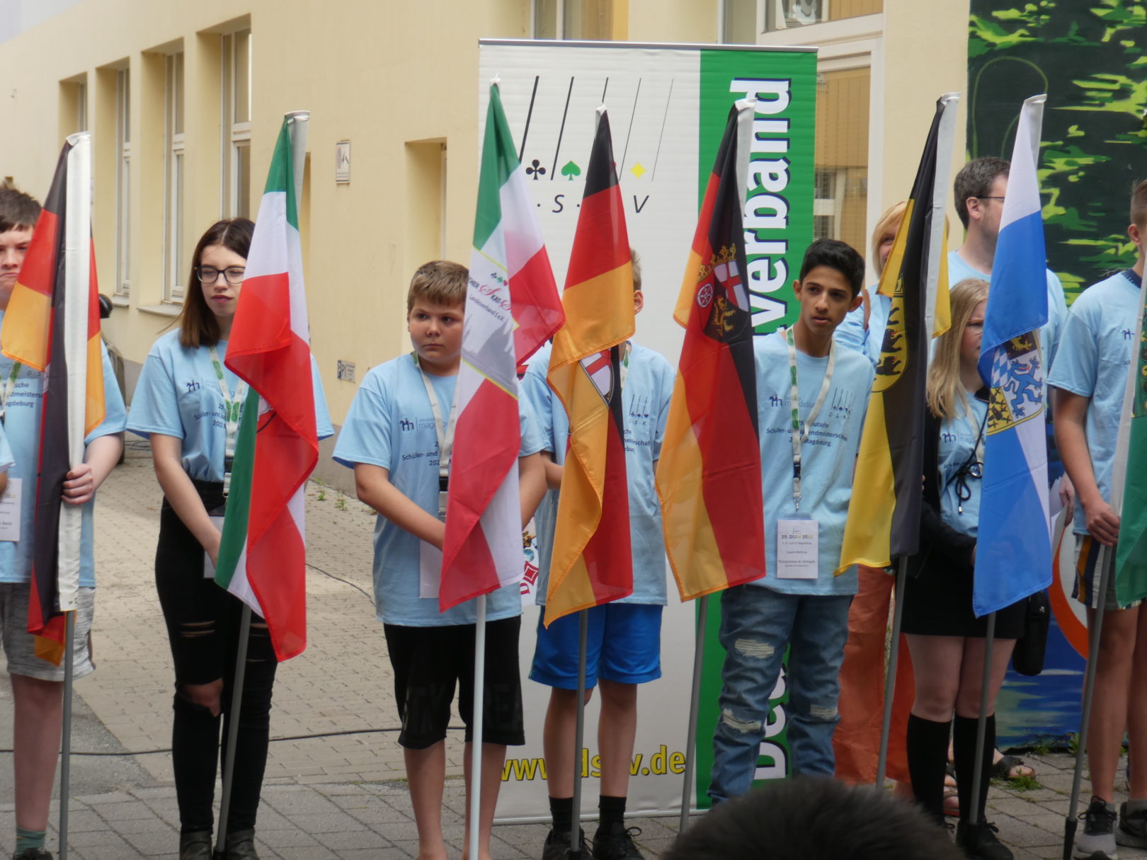Die 29. Deutschen Schüler- und Jugendmeisterschaften wurden vor der Jugendherberge in Magdeburg eröffnet. Bei strahlendem Sonnenschein traten insgesamt 82 Spieler*innen in den Kategorien Bambini, Schüler und Jugend gegeneinander an.