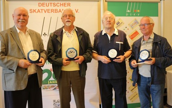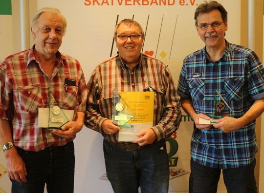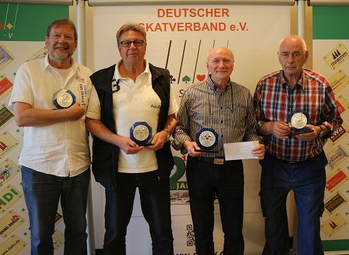 237 Skatspielerinnen und Skatspieler, davon 79 Tandems und 33 Mannschaften spielen Samstag und Sonntag um 600 Euro im Einzel. Ebenso sind 23 Romméspieler im Hotel Müggelsee in Berlin.