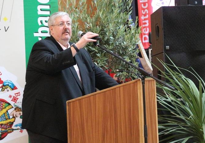 Die Begrüßung durch Peter Tripmaker und dem Oberbürgermeister Michael Wolf des Austragungsortes Altenburg verlief kurz und herzlich zu diesem Event, welches mittlerweile zum 7. Mal stattfindet. Die Nationalhymne sang Nicole König und Hubert Wachendorf (Verbandsspielleiter) gab mit einem „Gut Blatt“ den Startschuss pünktlich um 13:00 Uhr.