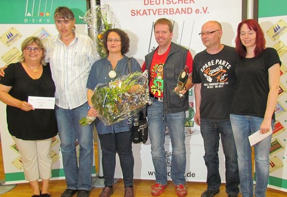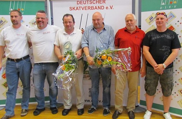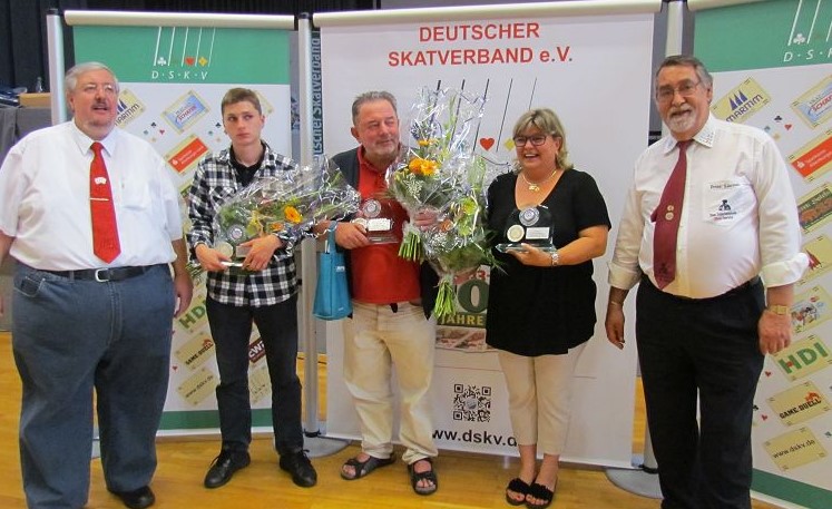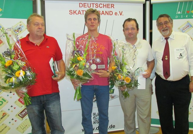 v. li.: Günther Reinhold (2.), Erwin Kröhle (1.), Michael Nelißen (3.), Peter Luczak (Skatgericht)