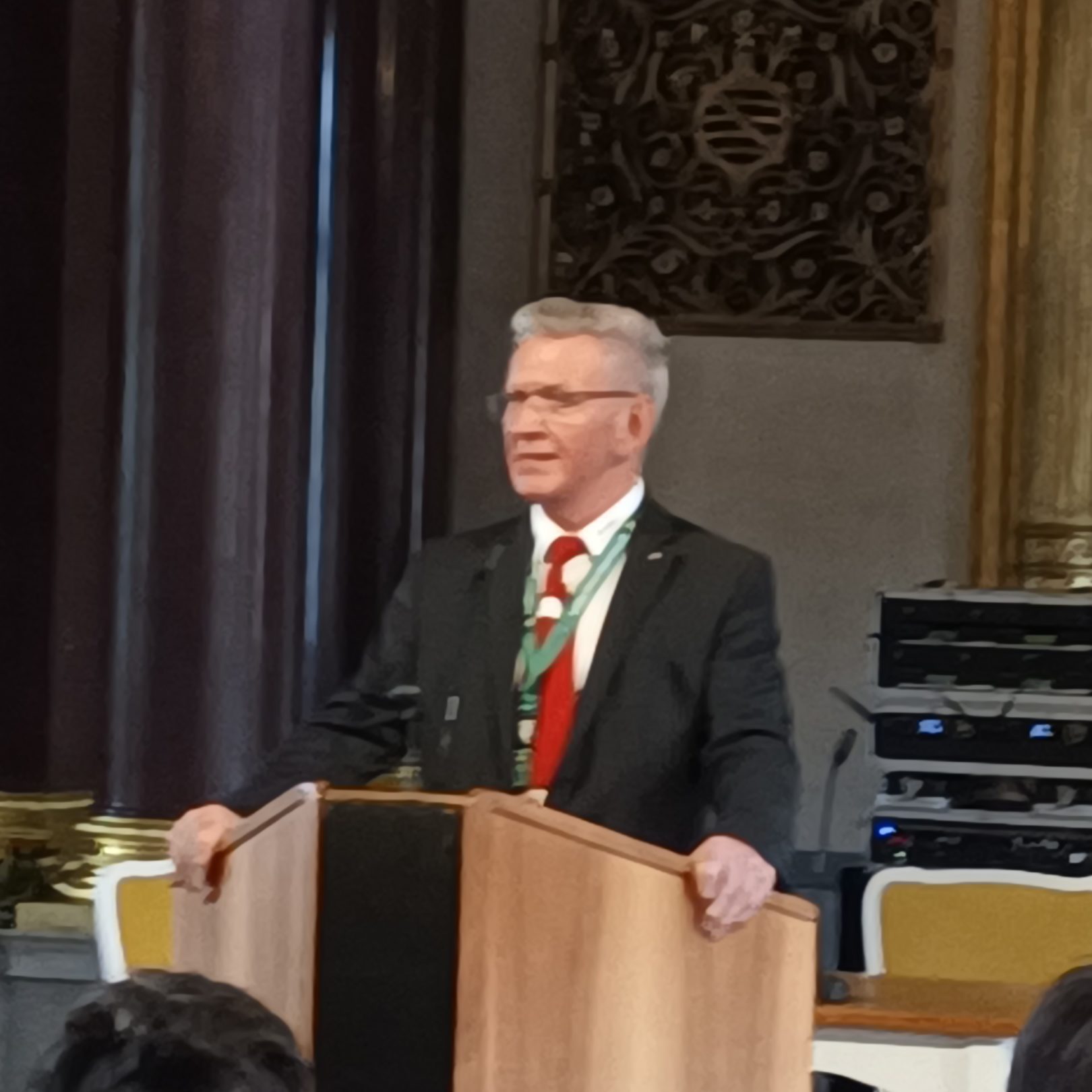 Der Beigeordnete der Stadt Altenburg, Herr Tanzmann, hieß die Teilnehmerinnen und Teilnehmer auch im Namen der Stadt Altenburg und im Namen des Oberbürgermeisters der Stadt willkommen Er betonte die Signifikanz des Skatspiels in der Stadt Altenburg.