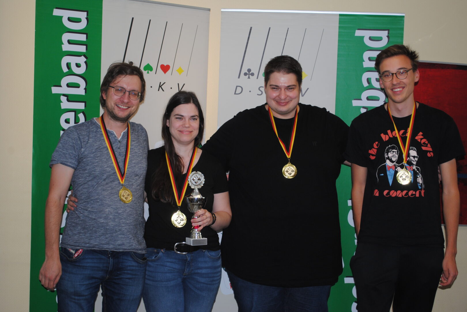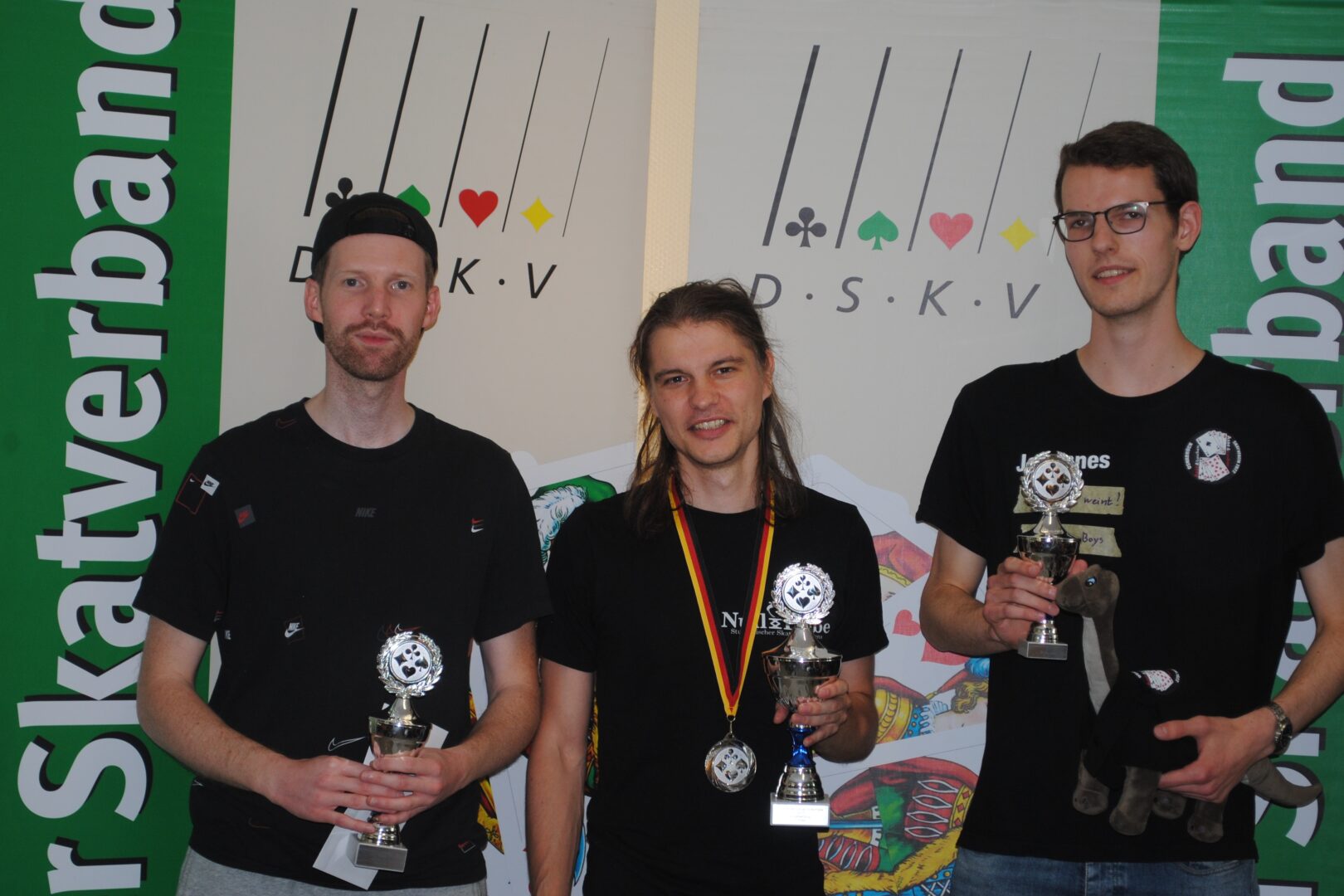 So schien dann die Stunde des bis dahin Fünftplatzierten Marius Danner (Direkt Energie Eschborn), der vor dem letzten Spiel, in dem er Geber war, mit 76 Punkten vor Marian Ritsch (Studentischer SV Null-Hebe Jena) führte. Es kam, wie es kommen musst, Marius gab Marian nicht nur das erforderliche 27er Spiel, sondern einen Grand mit 4, den dieser auch noch Schneider spielte, und somit mit 118 Punkten Vorsprung den 1. Junge Leute Pokal für sich entscheiden konnte,