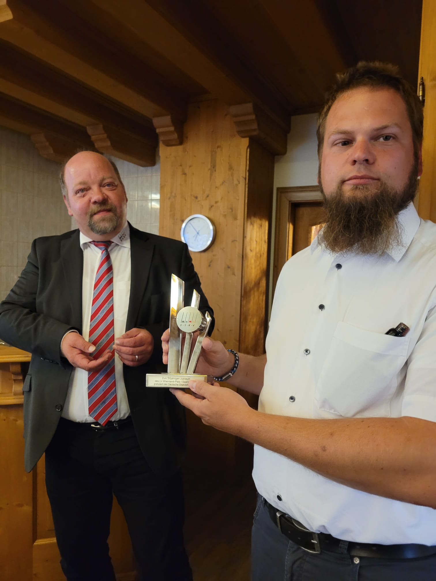 Dietmar Laske, Vizepräsident des DSkV, überreichte eine Ehrengabe an Christian Bode, Präsident des LV6.