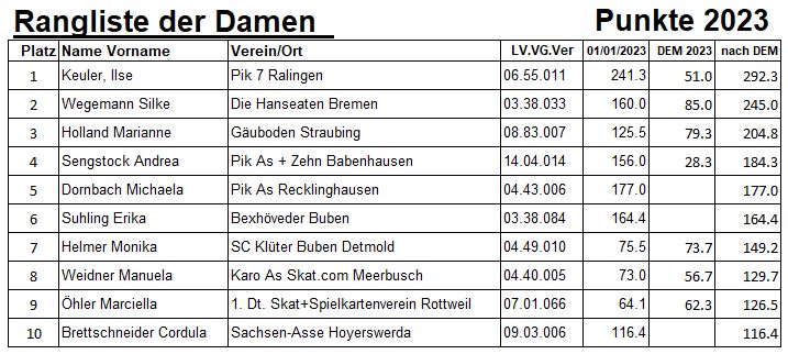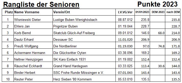 Bei der DEM 2023 in Magdeburg wurden auch die Ranglistensieger 2023 geehrt: