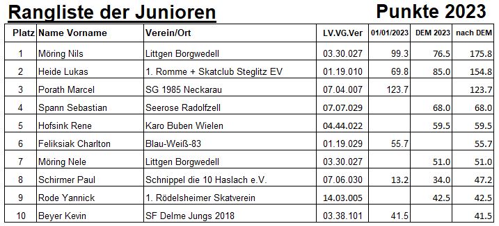 Top 10 Junioren