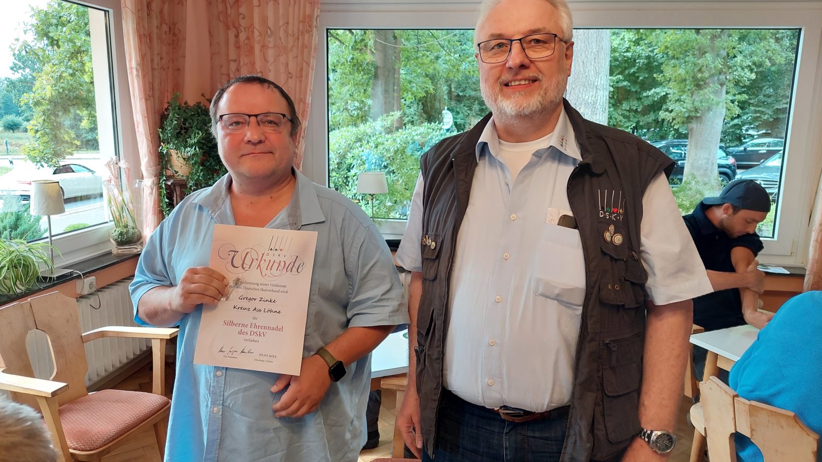 Im Rahmen des letzten Spieltages wurde Gregor Zinke mit der Silbernen Ehrennadel des DSkV geehrt.