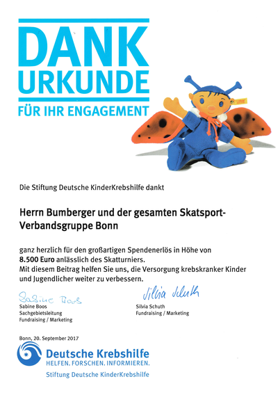 Ein Novum beim diesjährigen Deutschlandpokal war, dass neben den üblichen Siegern in den Einzel-, Tandem-und Mixed-Wettbewerben krebskranke Kinder die Gewinner waren. Die größte jährliche Veranstaltung des Deutschen Skatverbandes e.V. (DSkV-www.staging-dskv.de) wurde genutzt um für die Stiftung Deutsche KinderKrebshilfe € 8.500,00 Spendengelder zu generieren.