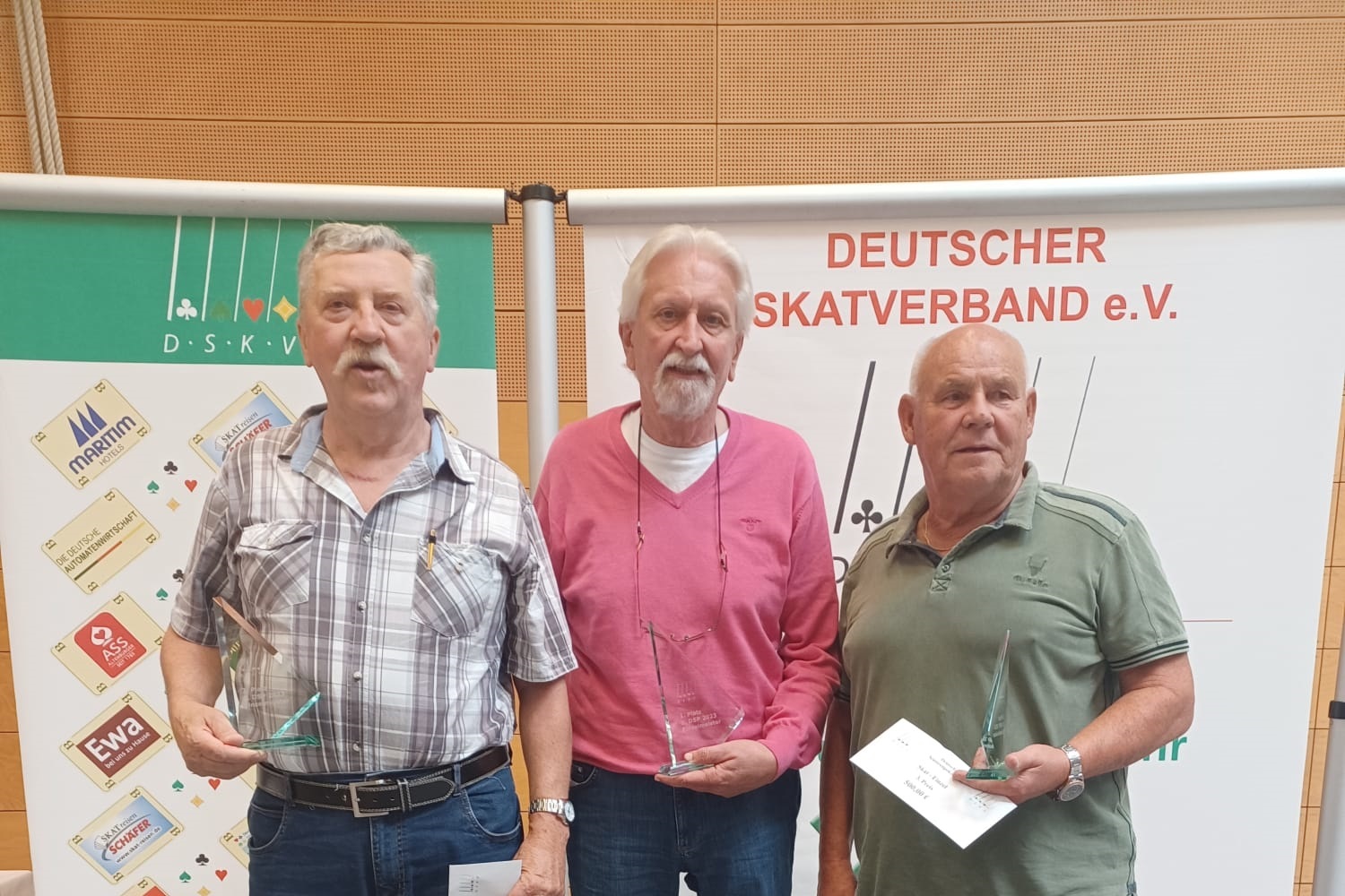 Vor den letzten beiden Spielen führte Peter mit 251 Punkten Vorsprung auf Jobusch. In Spiel 47 verlor Peter an Tisch ein einfaches Pik, während Jobusch in Tisch 2 einen Grand mit 3 Schneider gewann. So konnte sich Jobusch noch mit ganzen 13 Punkten Vorsprung vorbei schieben und den Deutschen Senioren Pokal für sich entscheiden. Auf Platz 3 landete Gisbert Wiewicke (SC Zu den Hellbergen Franzburg), der sich mit 1584 Punkten noch von Platz 27 nach vorne schob.