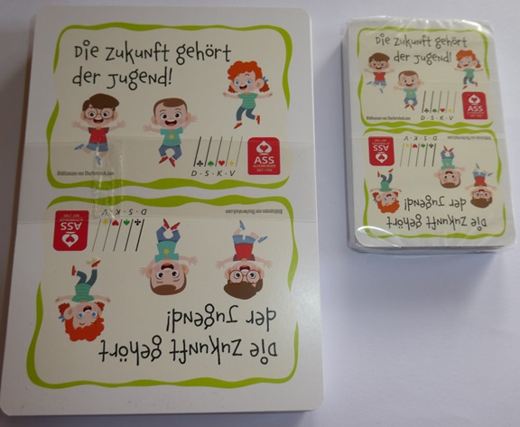 Da es immer wieder Nachfragen nach großen Kartenspielen (DIN A5 oder DIN A6), speziell für den Unterricht, gab und auf dem Markt keine adäquaten Kartenspiele zu beziehen waren, entschied sich das Präsidium, diese in Kooperation mit dem Spielkartenhersteller ASS anfertigen zu lassen. Das Design wurde von den Jugendkartenspielen übernommen. Links der Vergleich der Größen der Kartenspiele.