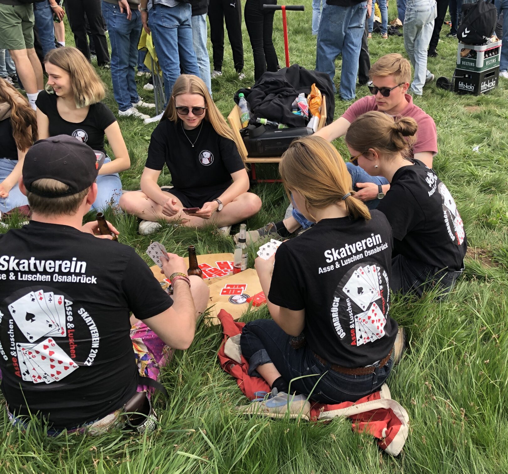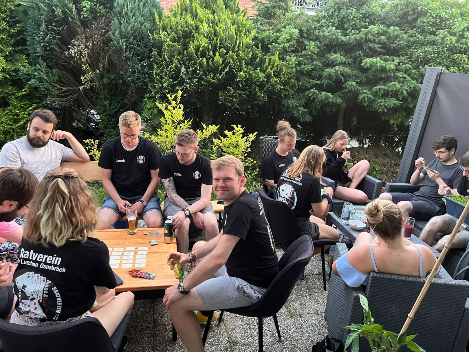 Außerhalb vom Skat sind wir auch als Gemeinschaft unterwegs, ob bei Spielabenden oder auf Festivals, wobei niemals unsere Vereinskleidung fehlen darf!