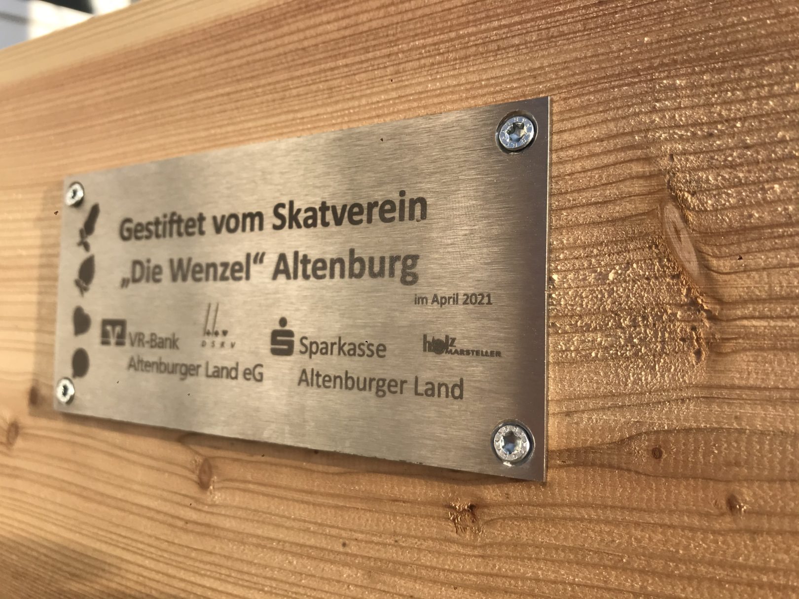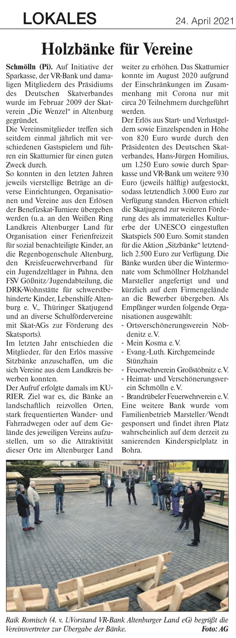 Aus den Erlösen des Benfiz-Skats 2020 übergaben die Altenburger Wenzel massive Holzbänke. Hier eine Pressemitteilung der Altenburger Wenzel.