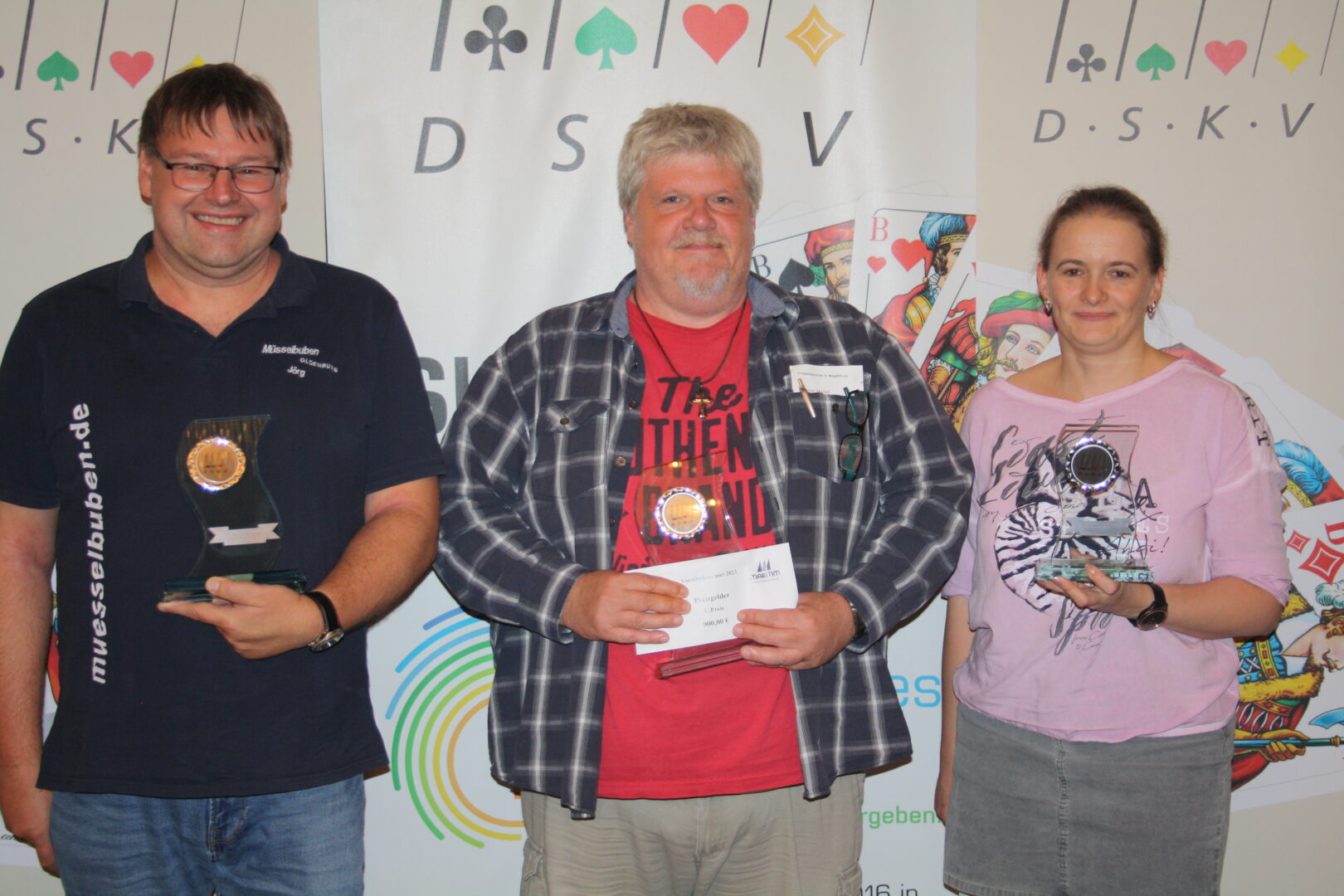 Michael Fleschner (SG Mainzer Höhe 1928 / Karo Einfach 1931) siegte mit fast 500 Punkten Vorsprung vor Jörg Dannemann (Müsselbuben Oldenburg) und Michaela Brauch-Zerche (SC Spitzbuben Obercunnersdorf).