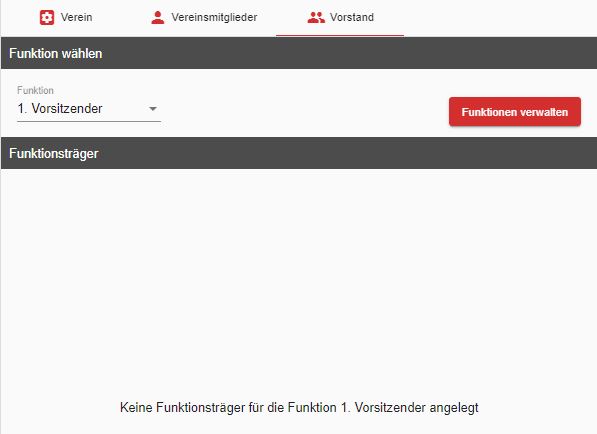 Gehe gleichermassen für die anderen vorgegebenen Funktionsträger (2. Vorsitzender, Schatzmeister, Spielleiter und Internet Beauftragter) vor und gib die entsprechenden Informationen ein. Willst du eine neue Funktion definieren, z.B. Jugendleiter, klick auf die rote Schaltfläche „Funktionen verwalten“, gib die entsprechenden informationen ein.