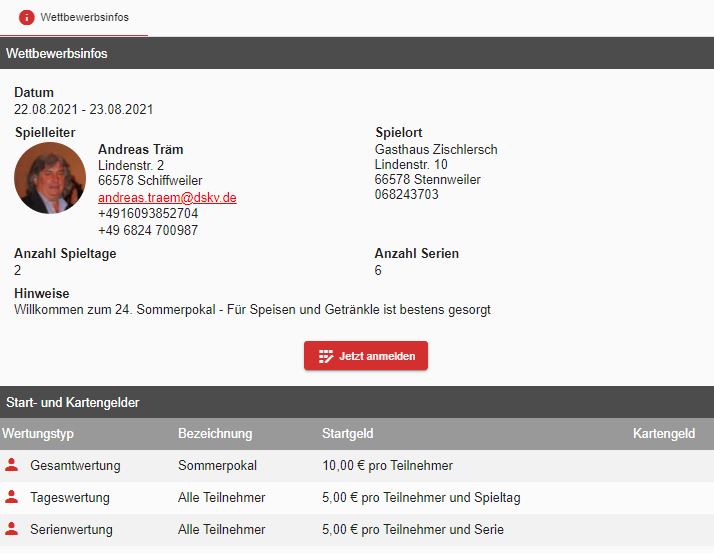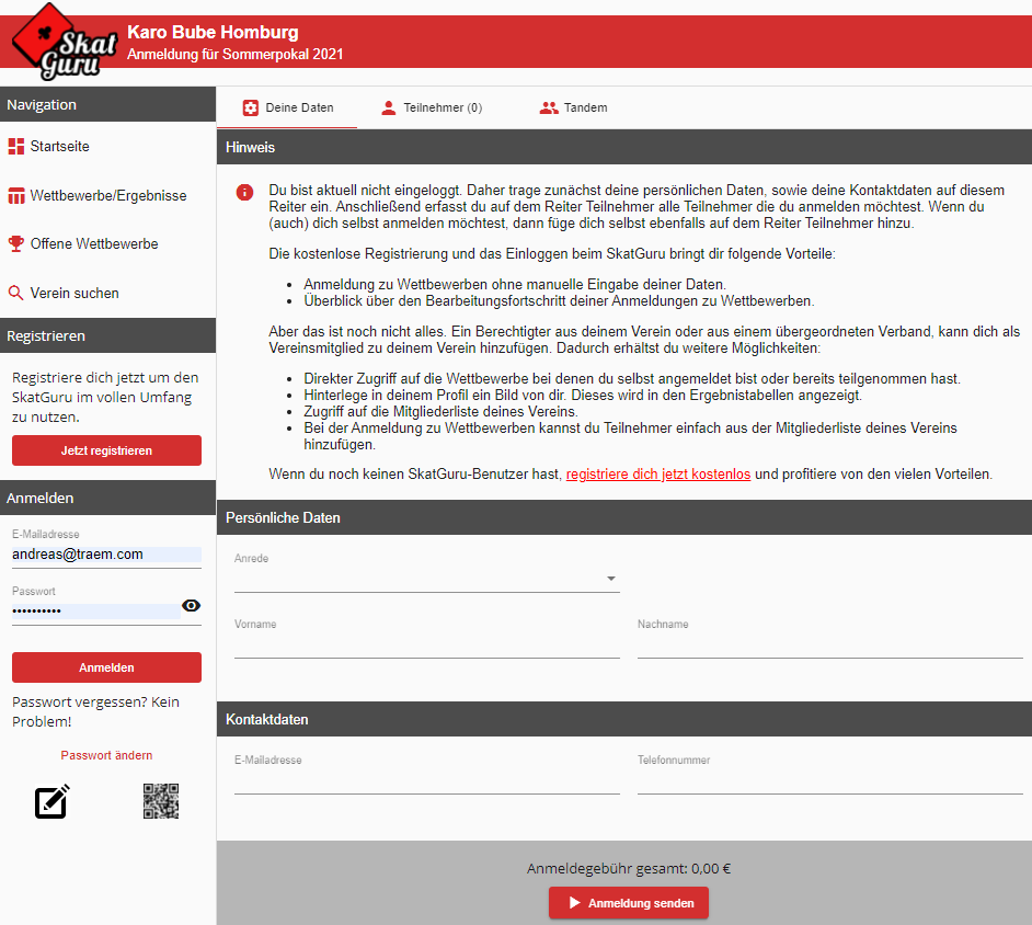 Anmelden zu einem Turnier (ohne Registrierung bei Skatguru)