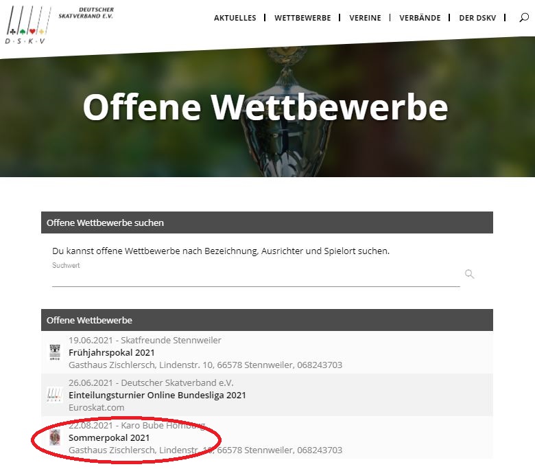- Vereinsabende und wöchentliche Preisskatveranstaltungen sind keine offenen Wettbewerbe!